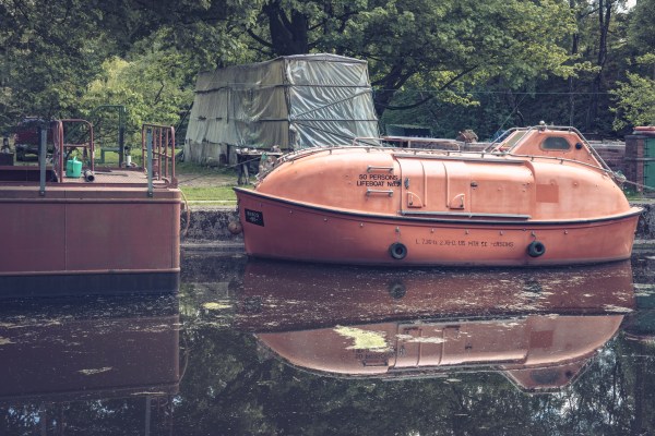 In the next picture you can see a 50-person lifeboat tied up to its mooring which I’m sure is very reassuring for anyone that might take a wrong turn down the canal in a cruise liner.
