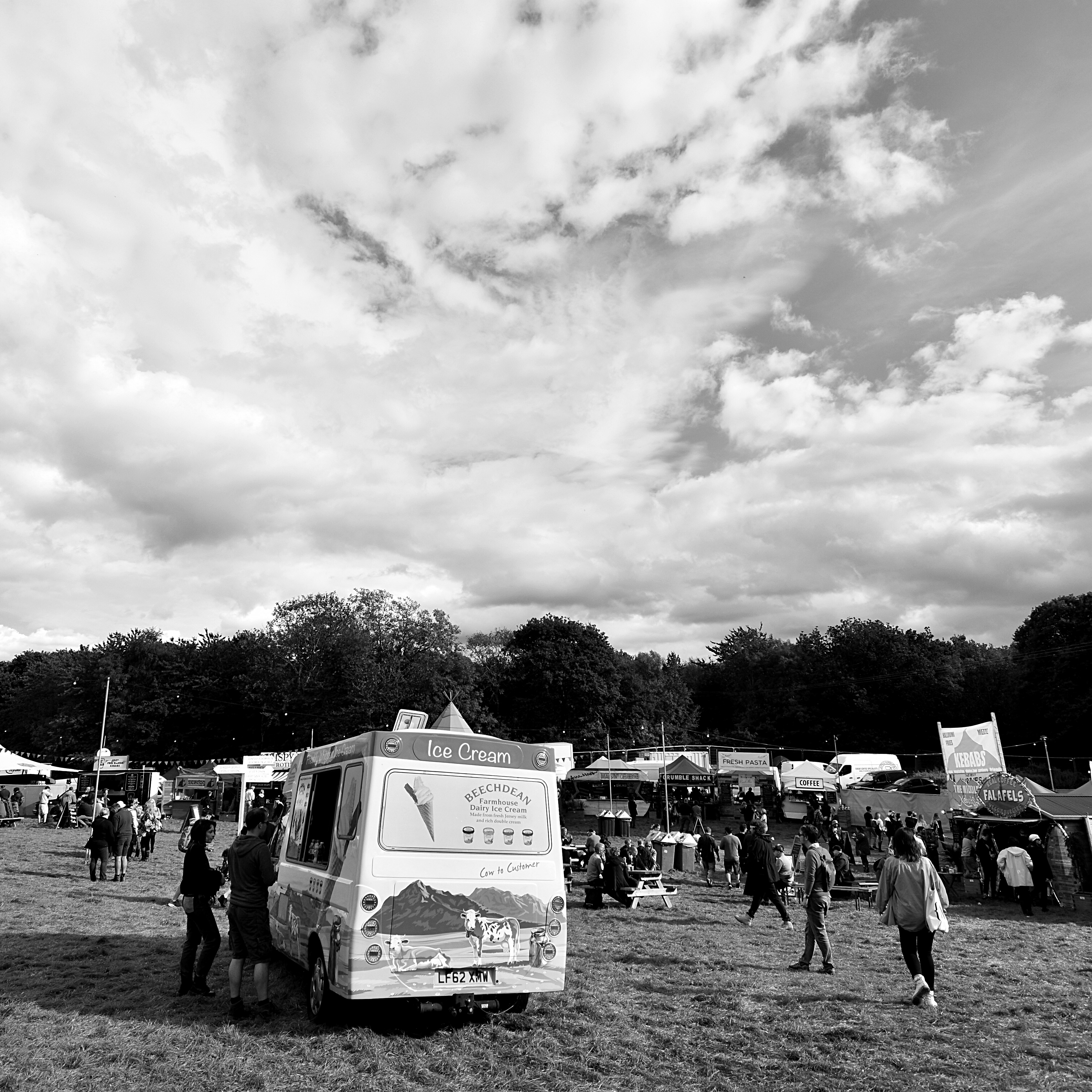 Ice cream van in a field at a festival